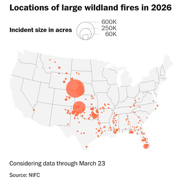 The winter season rain and snow accumulation is significantly below normal in the U.S. This makes the likelihood of fires this summer, well, very likely. One Meteorologist in California recently said he was “scared shitless.” Based on this map from a recent Washington Post article…